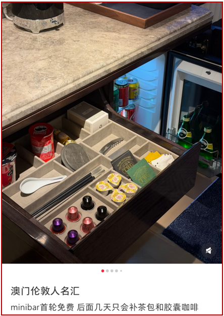 澳门安达仕酒店mini吧全部免费,吃不完可以带走;